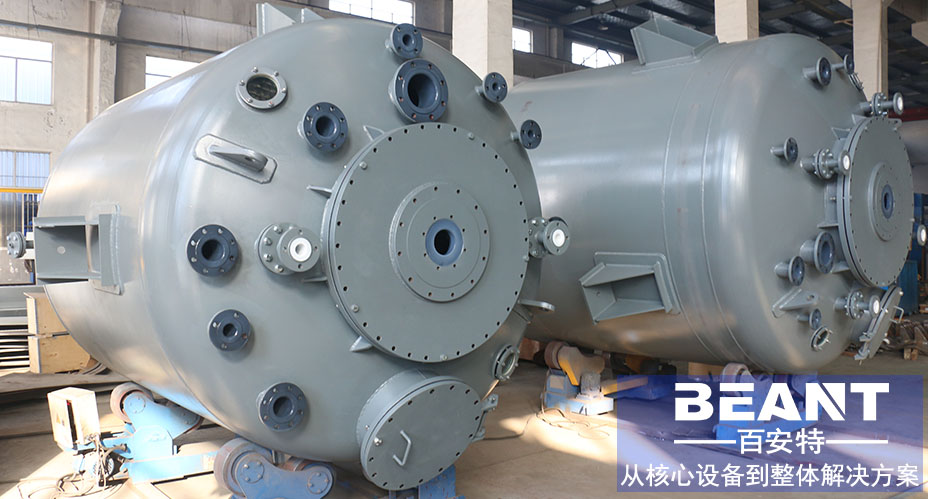 噴涂襯氟反應釜采用的氟樹脂靜電噴涂工藝是當今世界上最先進的防腐工藝,首先對設備表面經過高溫除油、除銹,然后對設備表面進行噴砂粗糙化,噴涂一層特殊底漆、然后將氟材料粉末通過高壓靜電設備充電,并在電場的作用下均勻的吸附在被加工的設備的表面上,然后經過高溫烘烤,熟料顆粒就會融化成一層致密的保護層牢牢附著在工件表面,例如1mm厚的涂膜,也需要反反復復5-6次噴涂和烘烤,一般最厚可以噴涂到2mm,氟材料有PTFE、PFA、FEP、ETFE、ECTFE、PVDF幾種。采用噴涂襯氟的設備已廣泛應用于化學工業(yè)、制漿與造紙業(yè)、食品工業(yè)和半導體工業(yè)中。